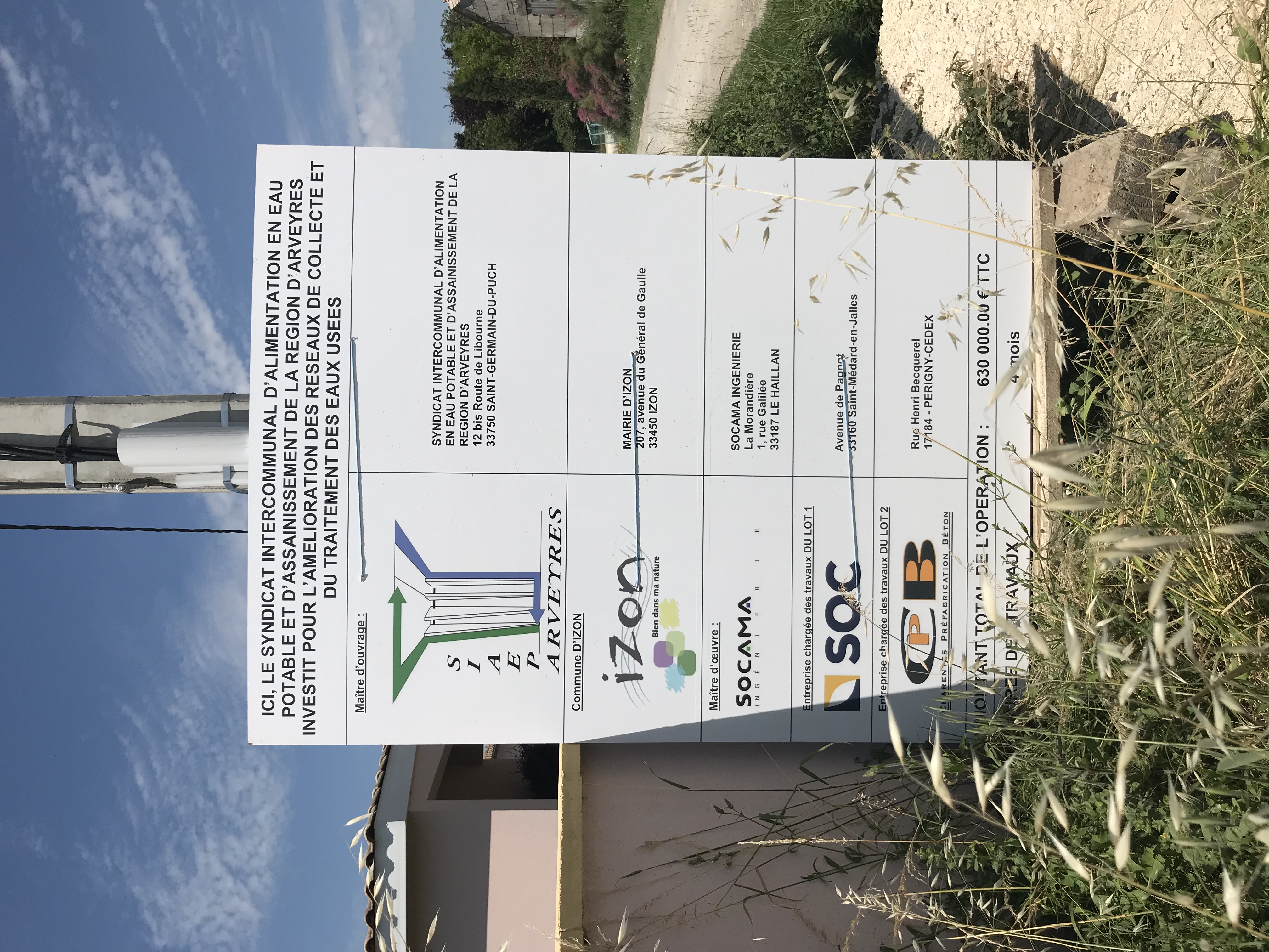Le SIAEPA de la Région d’Arveyres en accord avec la municipalité de IZON va procéder à la pose de 907 ml de canalisations d’assainissement collectif en gravitaire avec un poste de relevage suivi de 400 ml de refoulement.